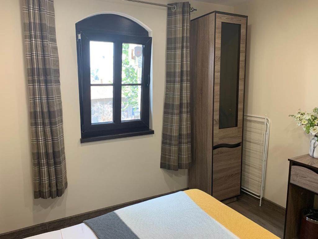Двуспалния ни апартамент разполага с тераса с мебел за сядане и гледка към улицата и паметника Асеневци. Пред къщата има обособен кът за сядане под асмата и клоните на старата смокиня.
