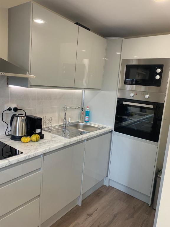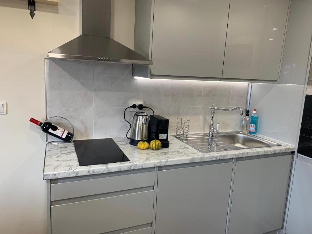 • Напълно оборудвана кухня с фурна, котлони, микровълнова печка и кафе-машина